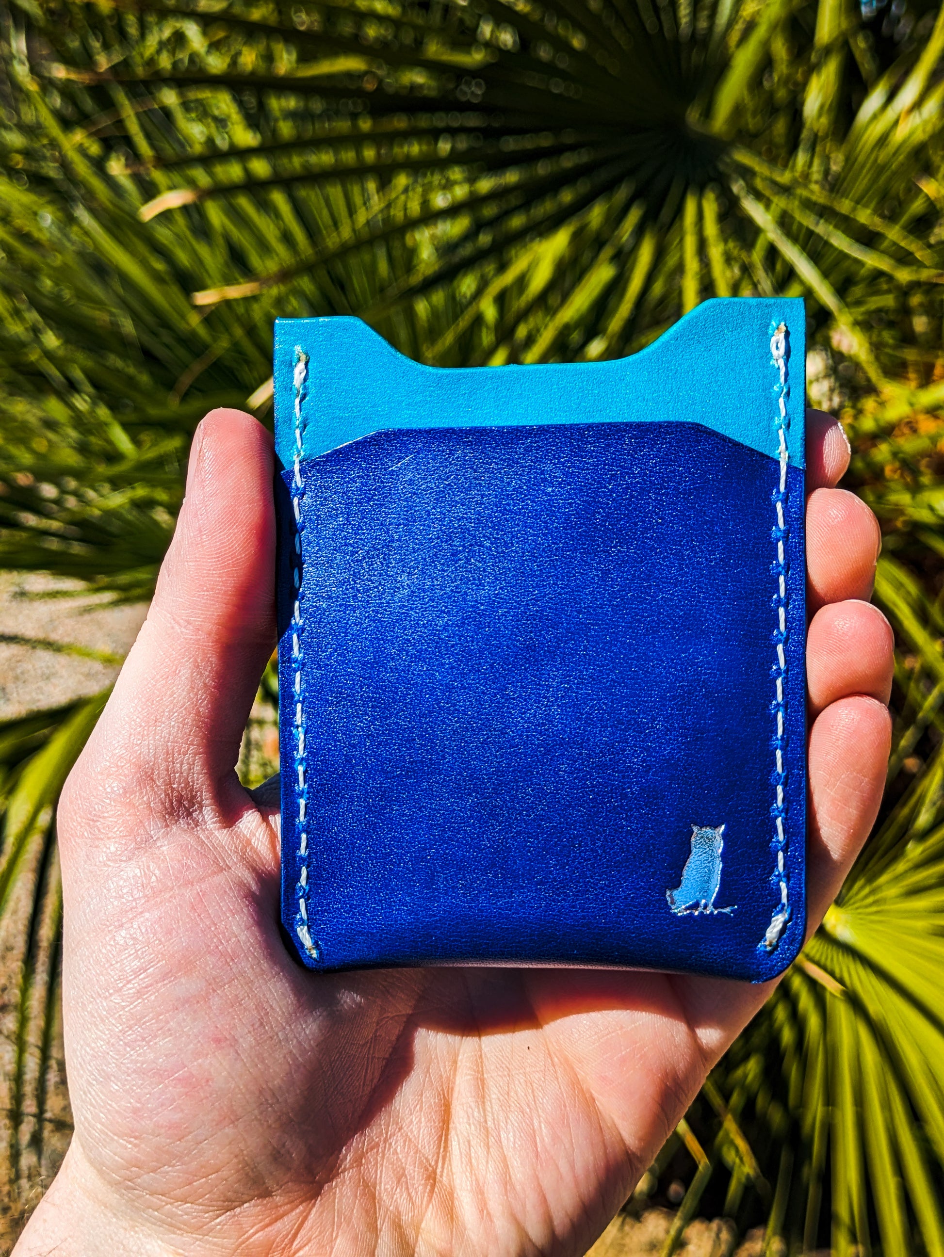 The Pygmy is a minimalist vertical 3-slot card wallet that holds about 6 cards. Made from top quality, 100% full-grain vegetable tanned leather, engraved, dyed, and painted by hand.