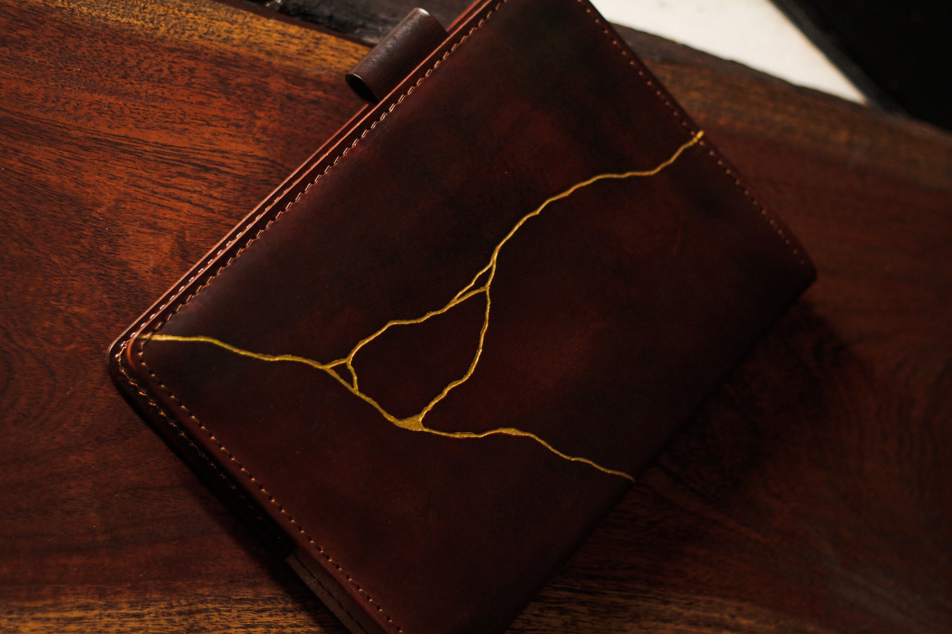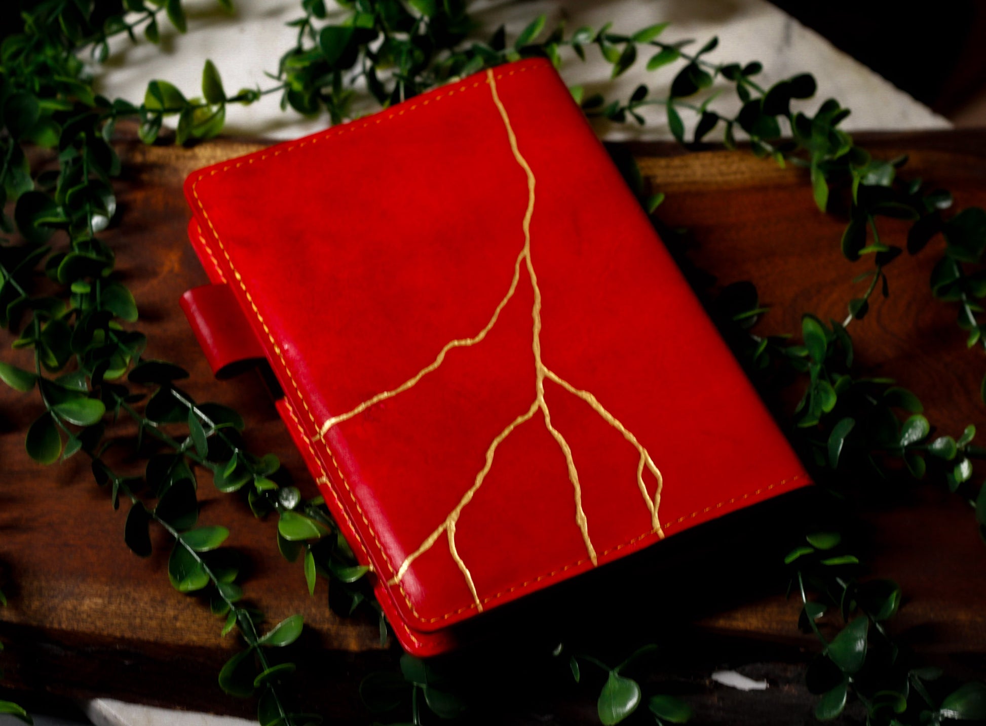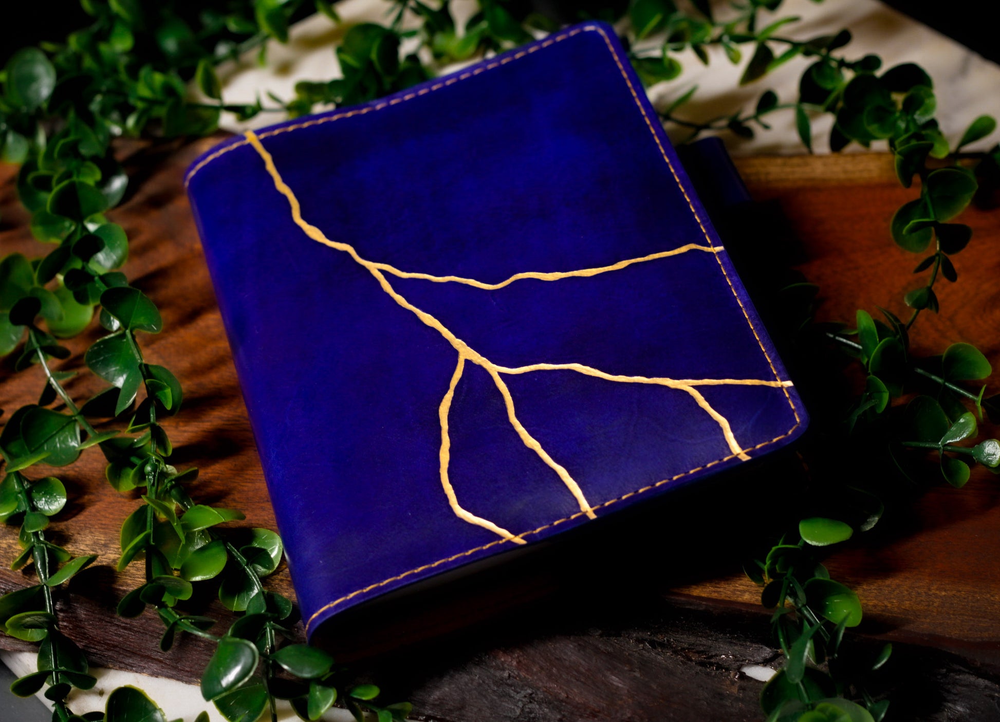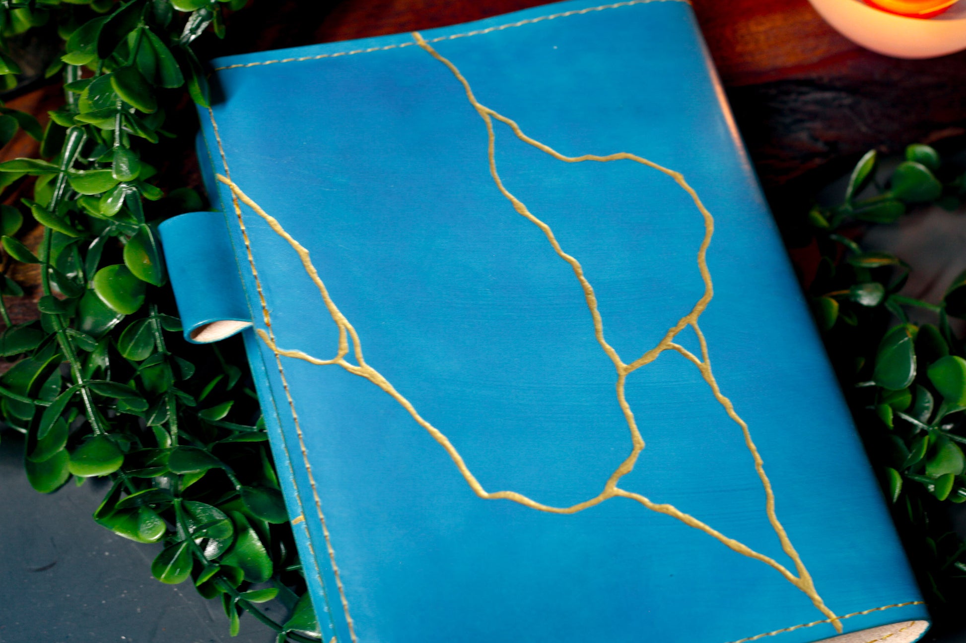 The Kintsugi styled design was inspired during my journaling sessions when processing the idea of accepting and embracing my flaws and faults. As a perfectionist, I often get negative of myself with every little thing and always feel the weight of not being *enough* in whatever capacity. The Kintsugi art of repairing pottery with seams of gold and precious metals naturally embraces the philosophy of highlighting the flaws and finding beauty within imperfections. It's a philosophy that really hits home for me personally and seeing the beautiful Kintsugi art always serves as a reminder to love and be who I am now rather than to mourn who I am not yet.