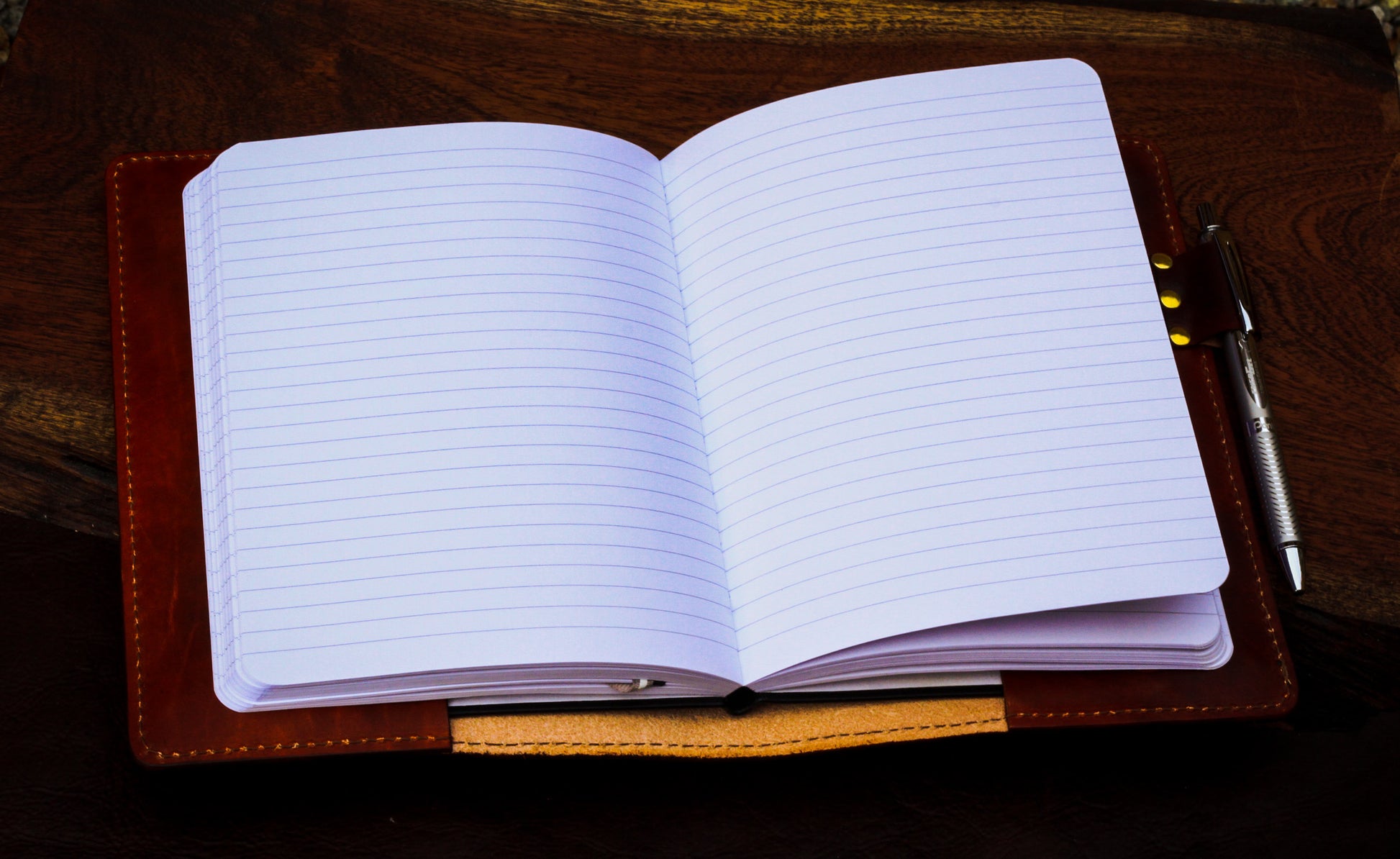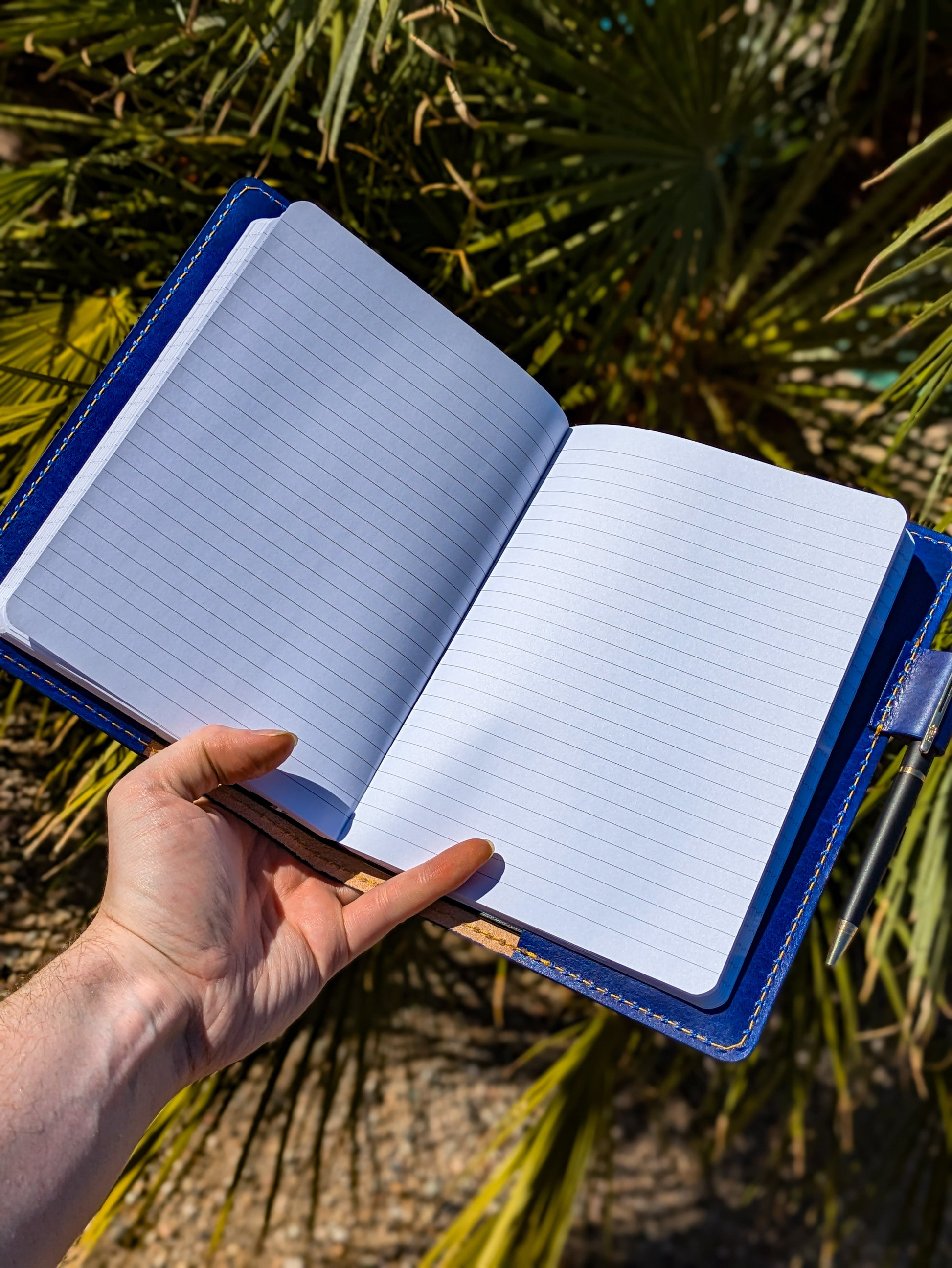 - Hardcover notebook with quality paper that doesn't bleed through even with fountain pen ink.