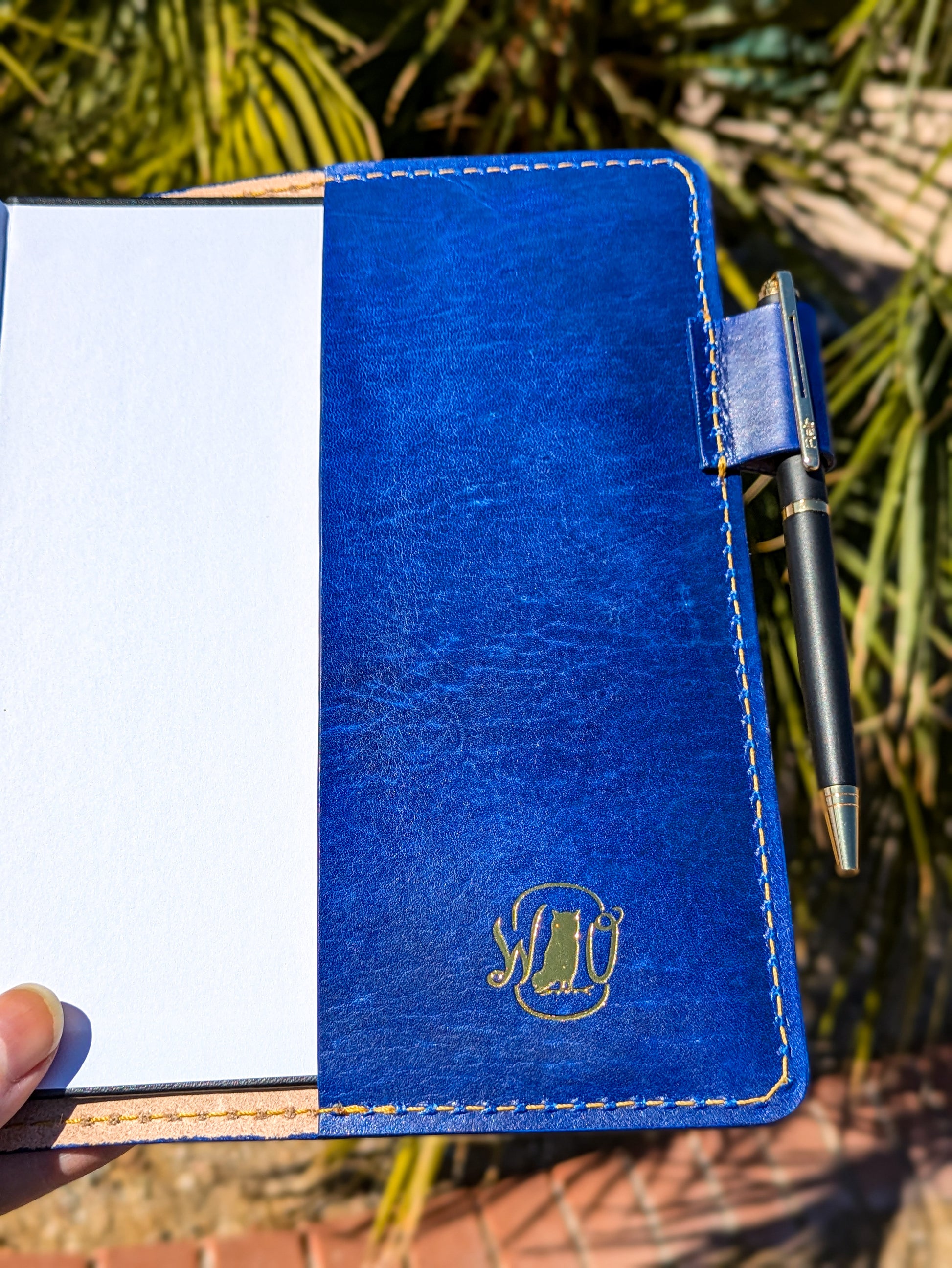 White Owl refillable journals come with a 6x8 lined paper hardcover journal with 192 pages and bookmarker ribbons. The journal cover is 100% full-grain vegetable tanned leather engraved, dyed, and painted by hand. Includes pen loop.