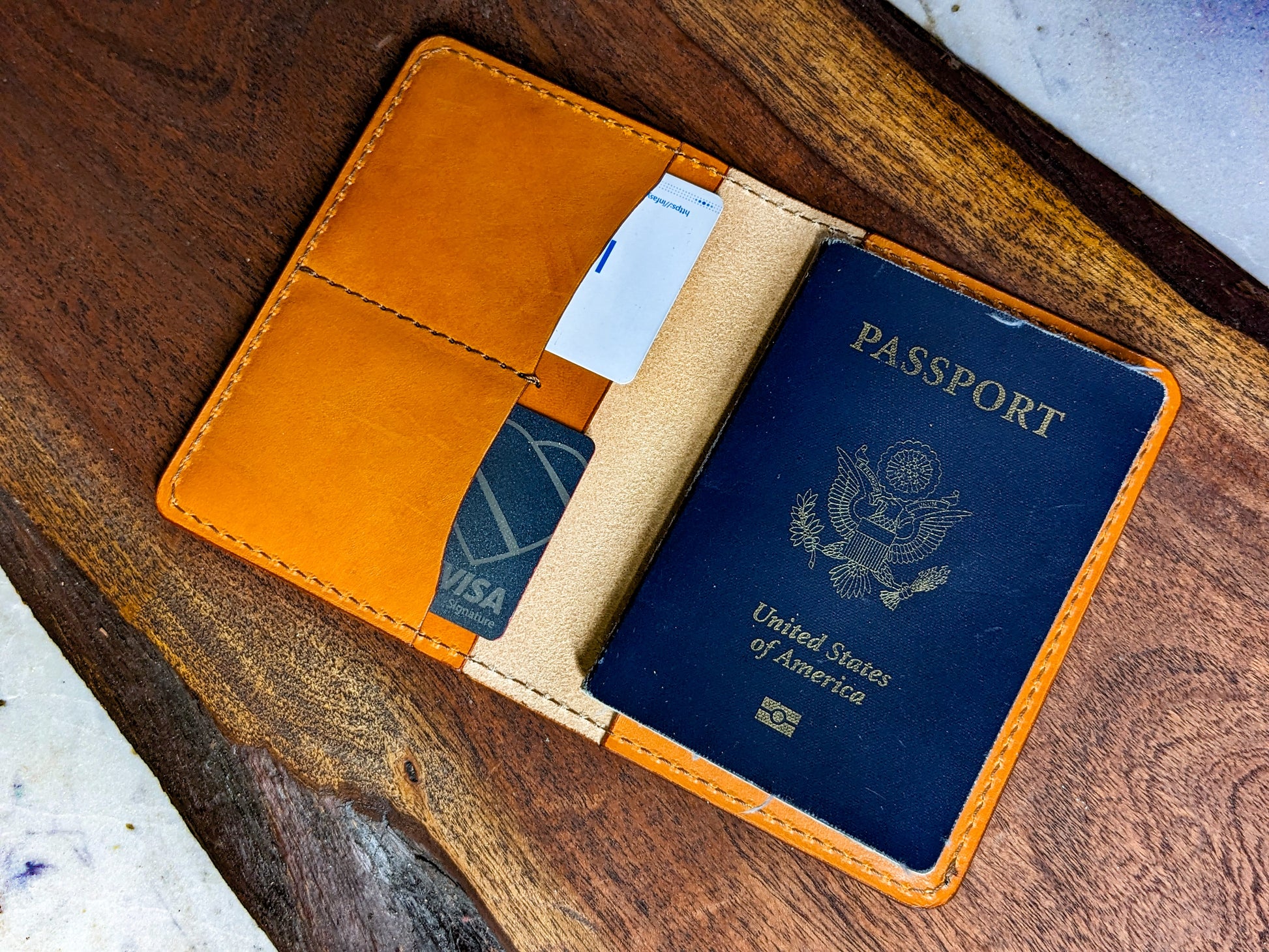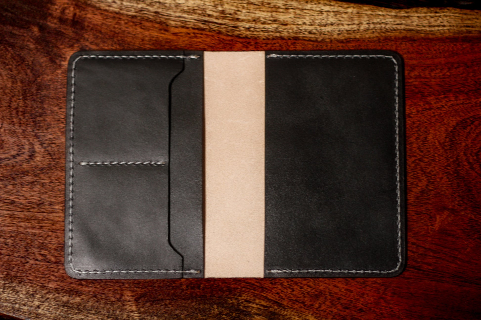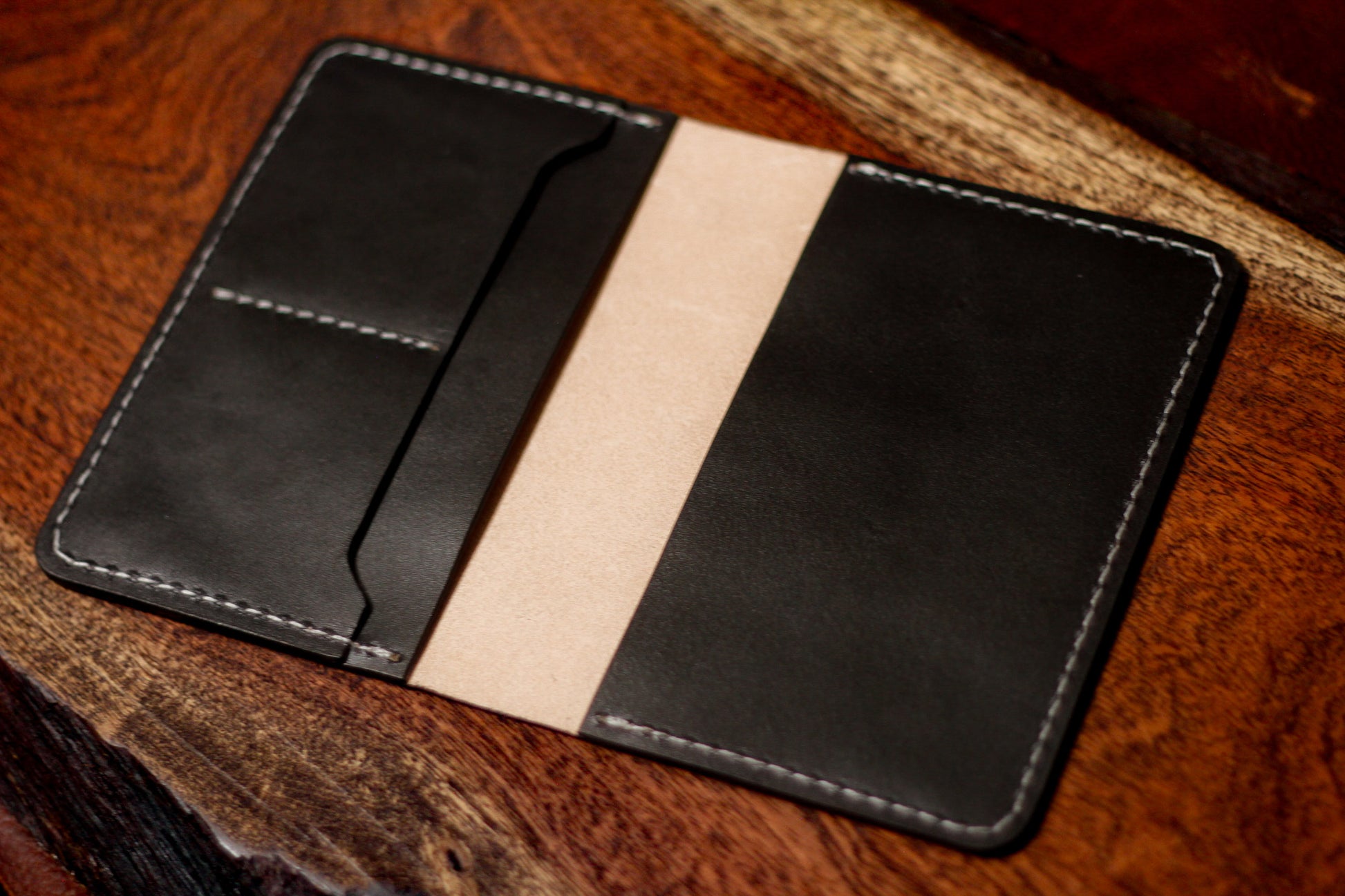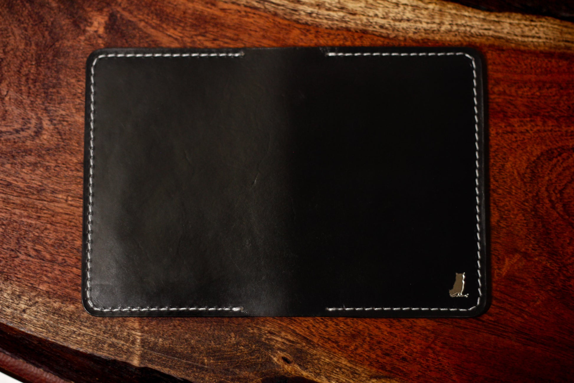 The clean and classy passport cover with 2 card slots and a long pocket underneath for more cards and cash.