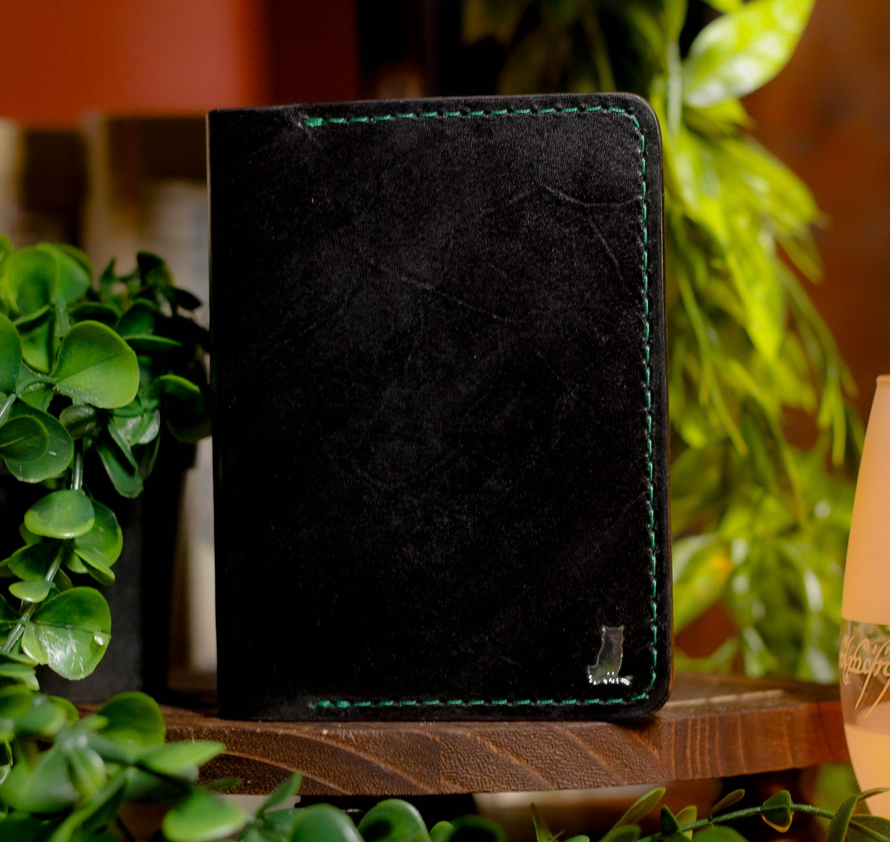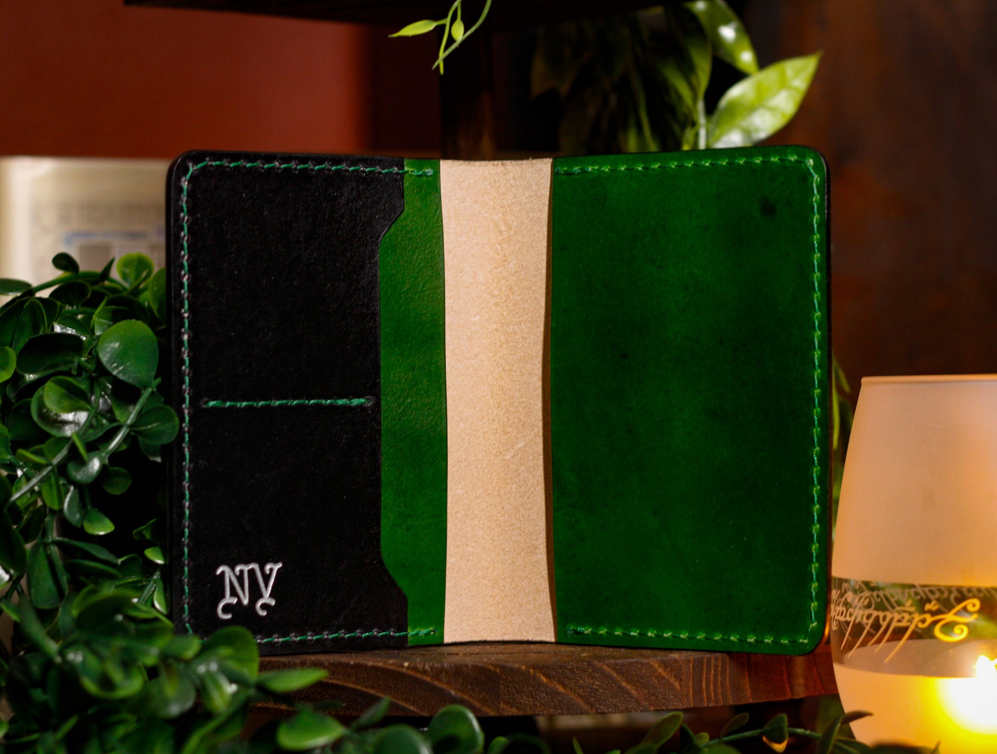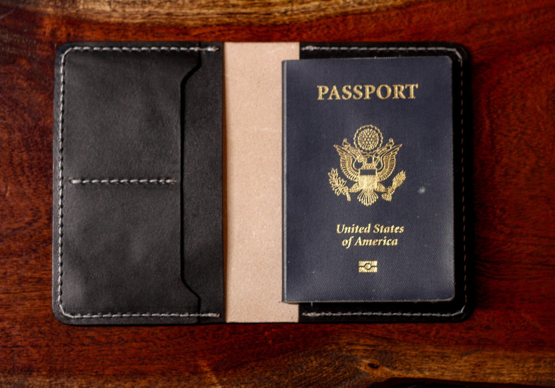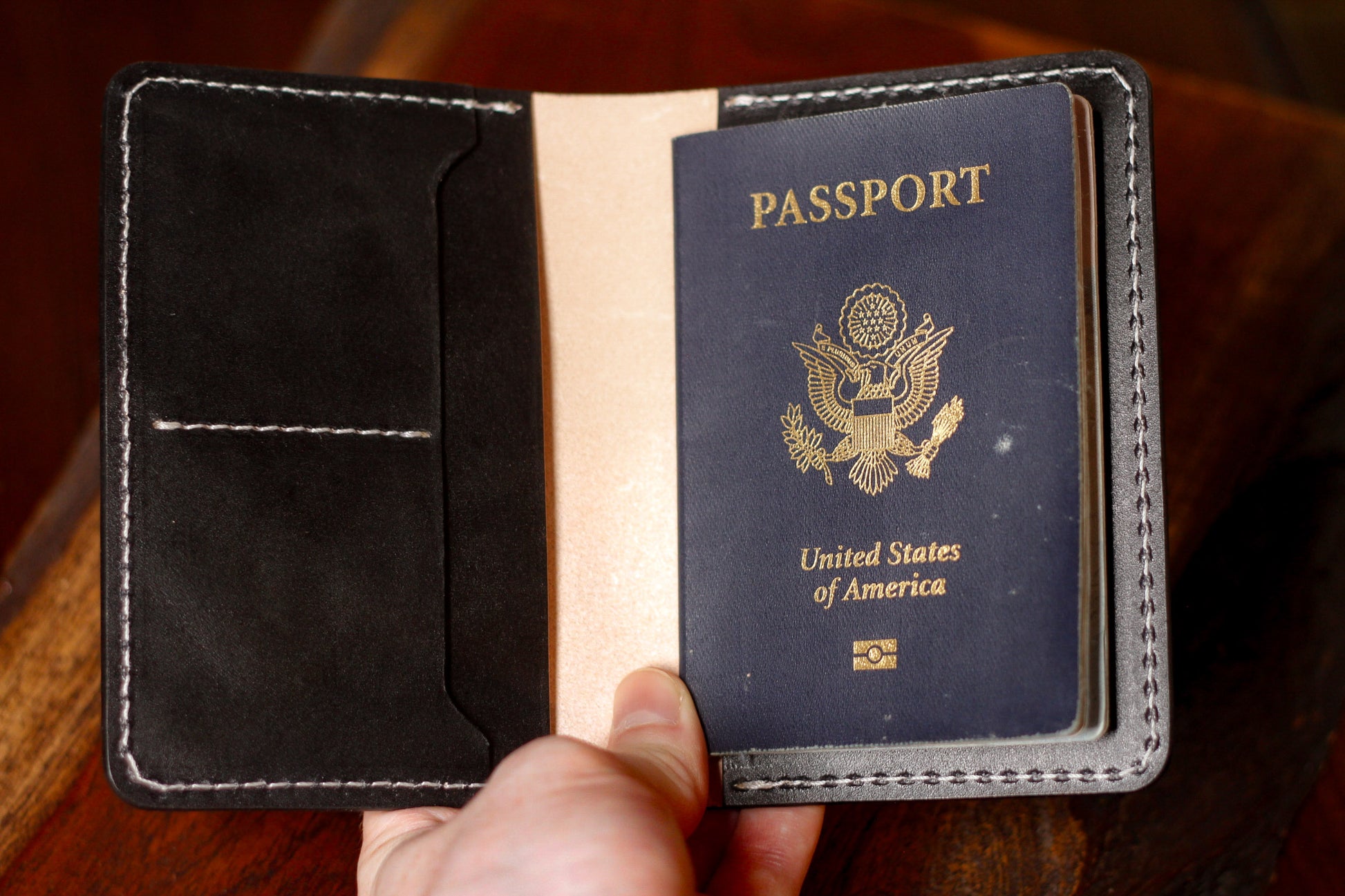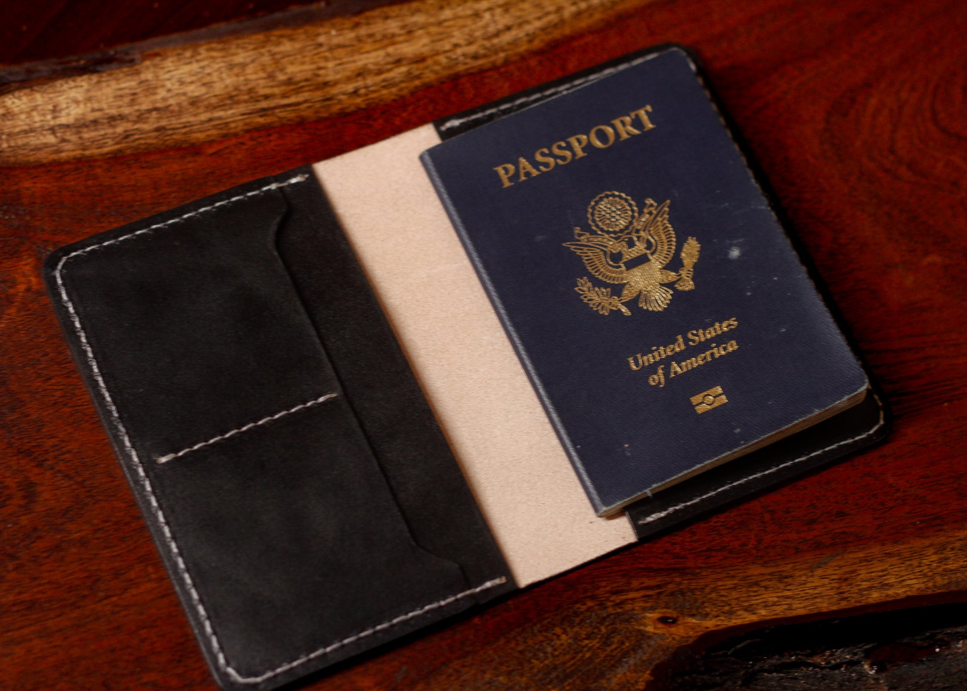 The clean and classy passport cover with 2 card slots and a long pocket underneath for more cards and cash.