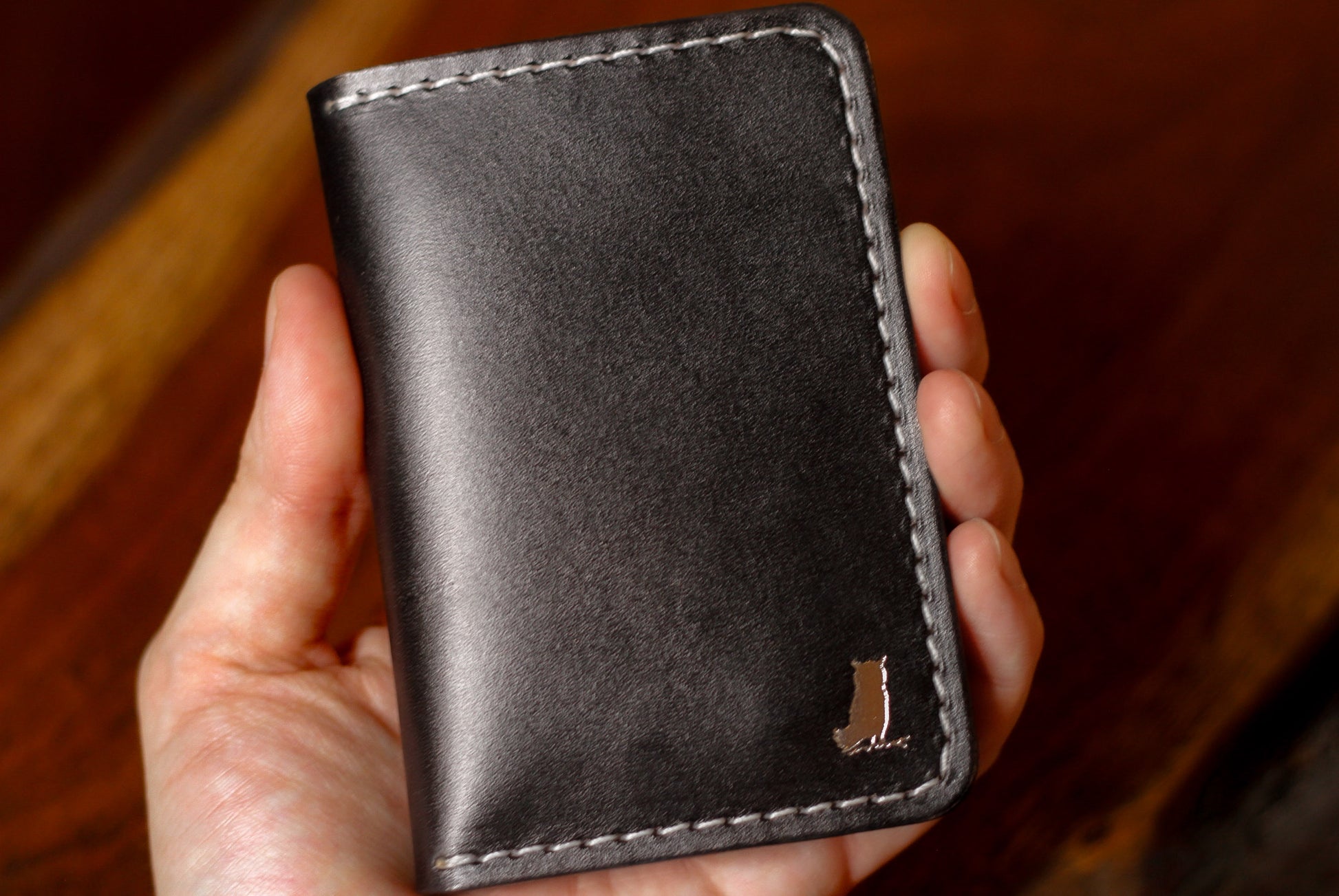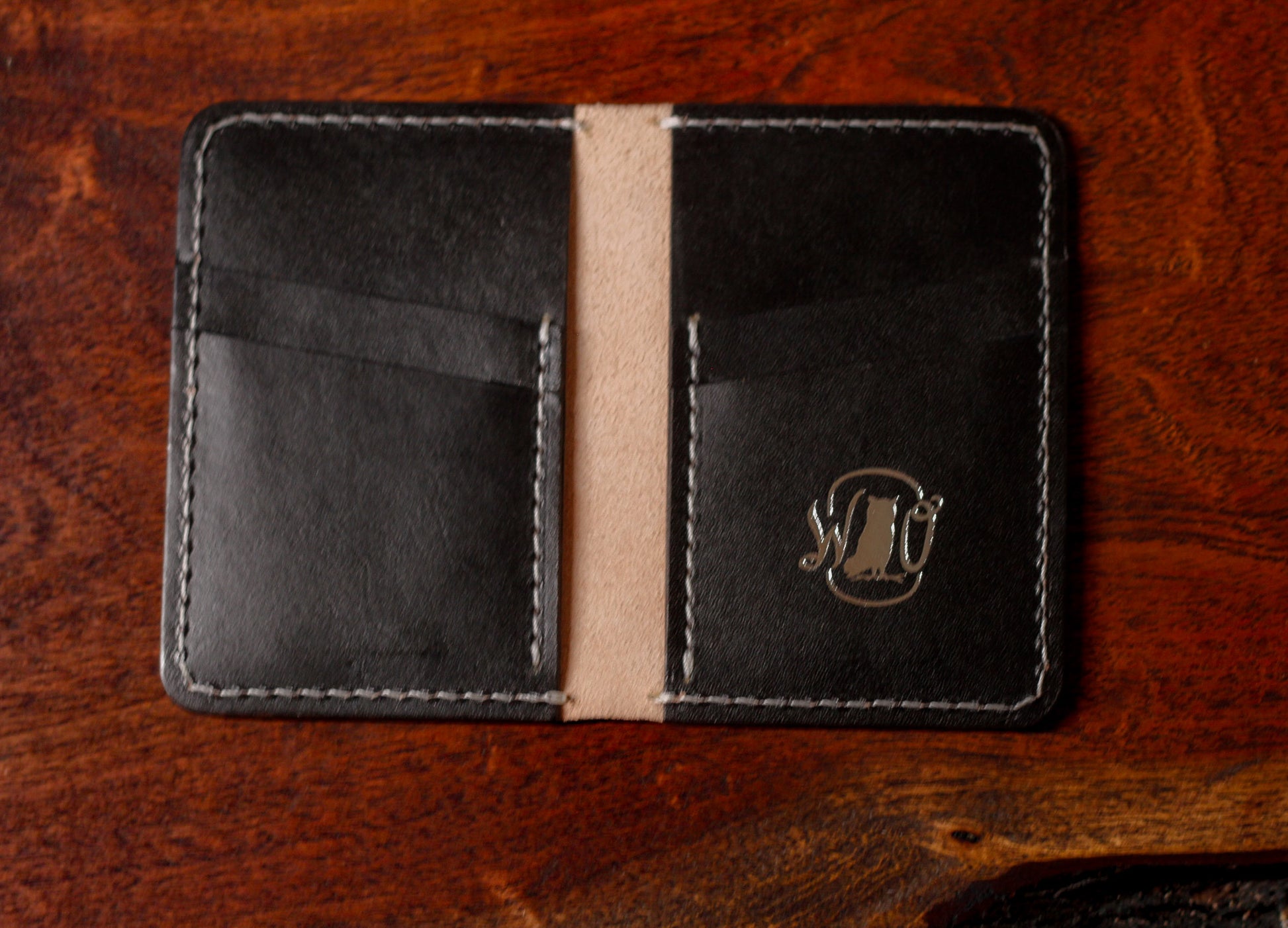 The Screech is a 6 pocket vertical wallet able to hold multiple cards and folded cash in a sleek and compact hand and pocket feel.