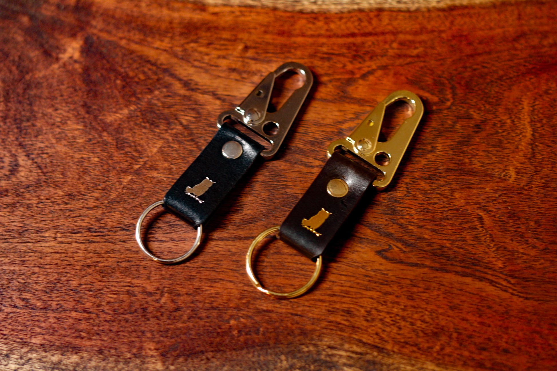 The White Owl Key Chain / Key Ring is made with our standard of high quality, full-grain leather, foil stamped with the Owl logo, and fitted with a durable silver or gold belt hook and key ring.